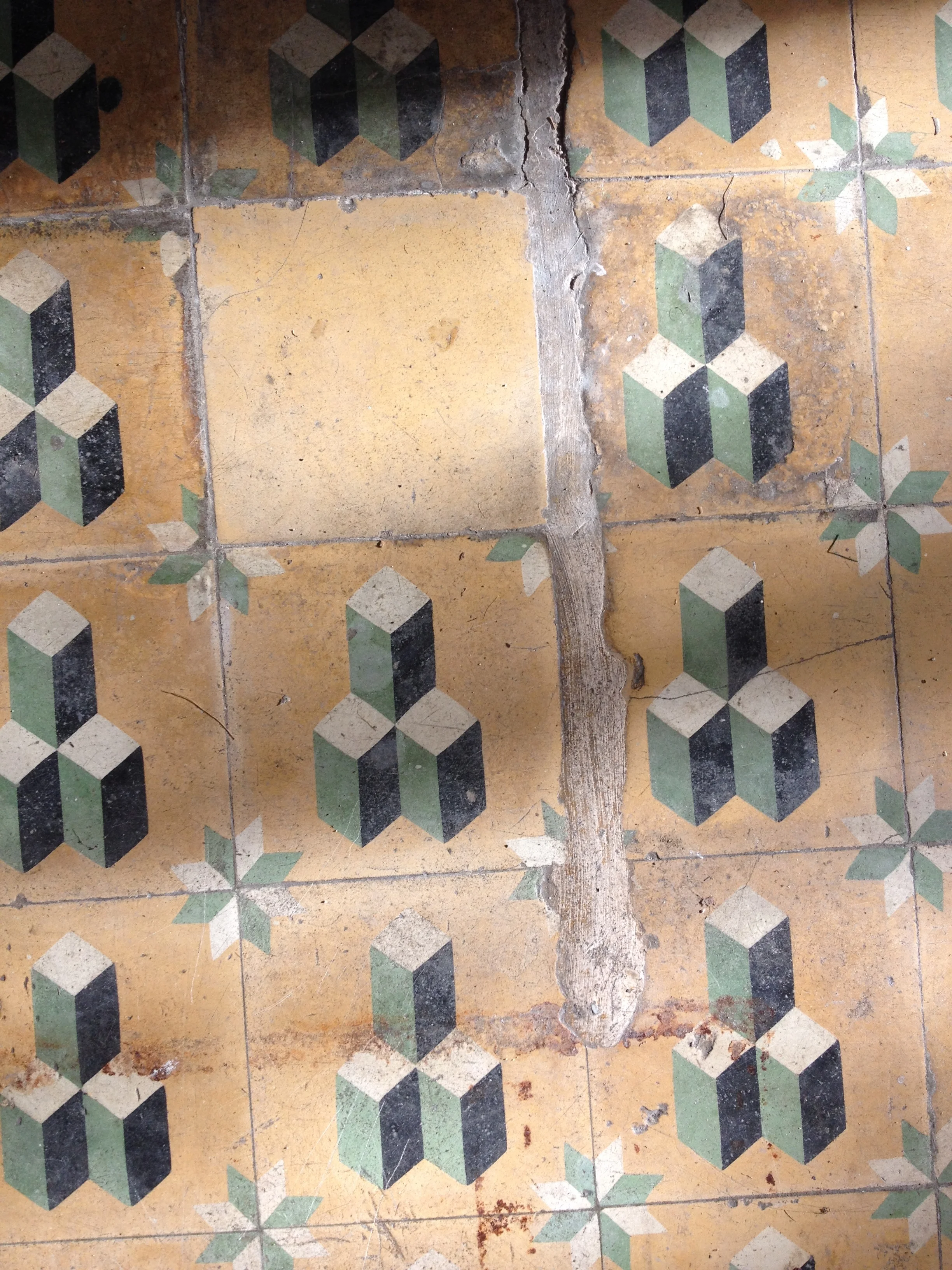 A marmorite que se descobriu debaixo da pintura (e que depois teve que se voltar a cobrir, por estar muito danificada)